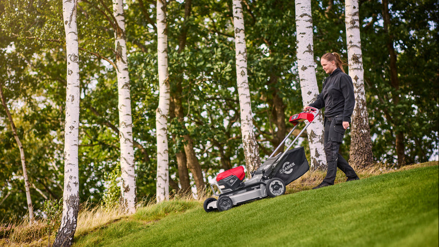 Kivételes lejtőteljesítményre tervezve az ATM™ egyenes és irányított pályán halad még meredek emelkedőkön is. A két tengelymotor külön-külön vezérli az egyes kerekeket, lehetővé téve, hogy a fűnyíró akár 25°-os lejtőket is leküzdjön tapadás vagy vágási minőség elvesztése nélkül.